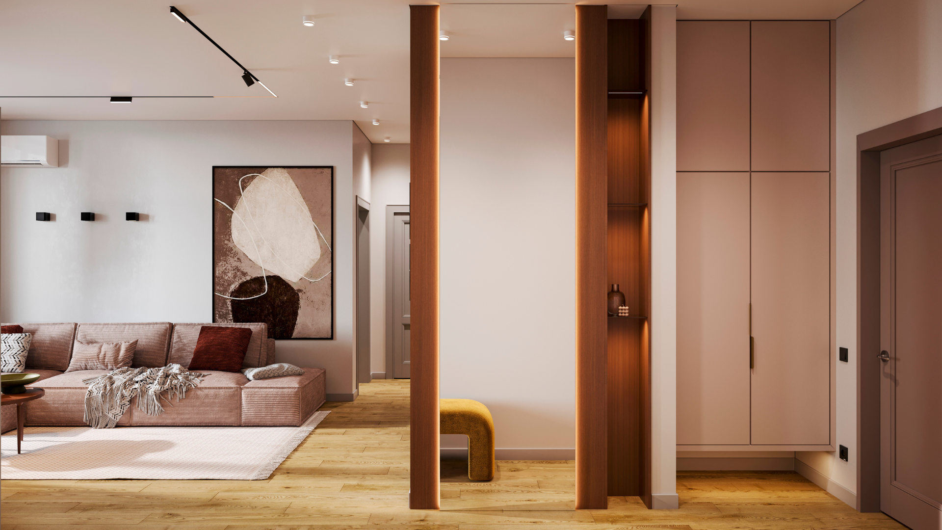 Наконец, мы позаботились о приватности внутри самой квартиры. Планировочные решения реализованы на базе систем сухого строительства Knauf. Вместо гулких перегородок мы используем каркасную систему с заполнением акустической минеральной ватой и — что принципиально важно — двойной обшивкой влагостойкими листами, по 12,5 мм с каждой стороны. Этот инженерный «сэндвич» работает по принципу «масса-пружина-масса», эффективно поглощая звуки в речевом диапазоне.