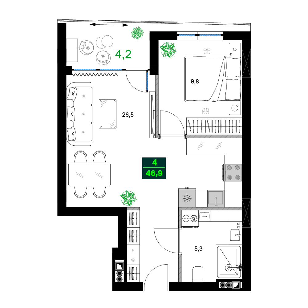 Общая площадь46.9 м²