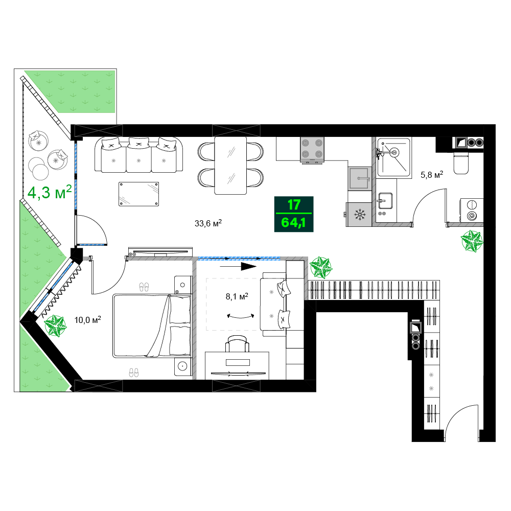 Общая площадь64.1 м²