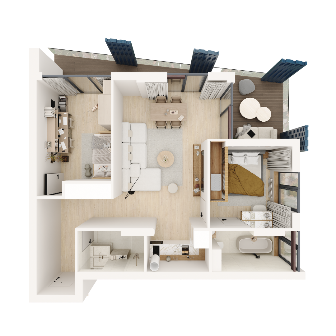 SUMMER 365-ის არქიტექტურა შექმნილია AI Architects-ის მიერ. შთამბეჭდავია არა მხოლოდ შენობის დიზაინი, არამედ თითოეული დეტალი: ერთი მხრიდან ფართო ტერასები, ხოლო მეორე მხრიდან – მწვანე ფასადები.